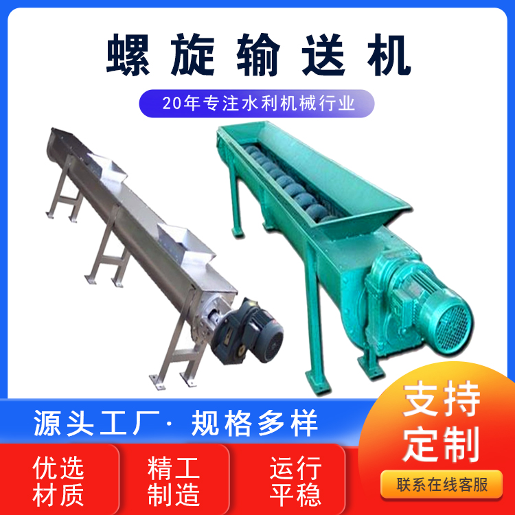 螺旋輸送機在輸送形式上分為有軸螺旋輸送機和無軸螺旋輸送機兩種,在外型上分為U型螺旋輸送機和管式螺旋輸送機。有軸螺旋輸送機適用于無粘性的干粉物料和小顆粒物料.(例如:水泥、粉煤灰、石灰、糧等)而無軸螺旋輸送機適合輸送機由粘性的和易纏繞的物料。(例如:污泥、生物質(zhì)、垃圾等)螺旋輸送機的工作原理是旋轉(zhuǎn)的螺旋葉片將物料推移而進行螺旋輸送機輸送,使物料不與螺旋輸送機葉片一起旋轉(zhuǎn)的力是物料自身重量和螺旋輸送機機殼對物料的摩擦阻力。螺旋輸送機旋轉(zhuǎn)軸上焊的螺旋葉片,葉片的面型根據(jù)輸送物料的不同有實體面型、帶式面型、葉片面型等型式。