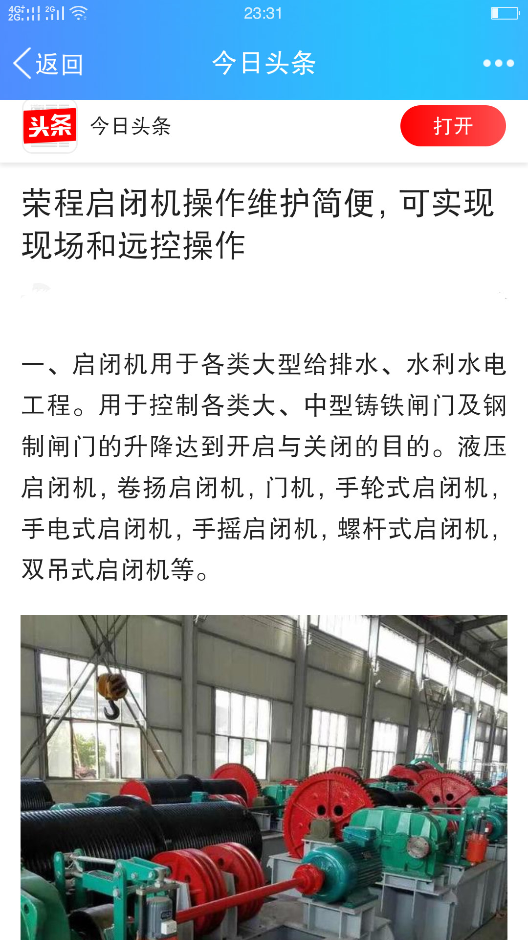 榮程水利卷揚啟閉機上今日頭條啦,榮程水利生產(chǎn)的水利設備質(zhì)量好價格有被客戶認可,卷揚啟閉機又單調(diào)點和雙吊點兩種。卷揚啟閉機以分為QPQ型普通卷揚啟閉機、QPK型快速卷揚啟閉機、QPG型高揚程卷揚啟閉機、QPT型臺車式卷揚啟閉機,QPM型門式卷揚啟閉機,QH型弧門卷揚啟閉機。卷揚啟閉機又分為:平門卷揚式啟閉機;弧形門卷揚式啟閉機;雙吊點卷揚式啟閉機;快速卷揚式啟閉機;移動式臺車啟閉機;雙吊點卷揚式啟閉機分為:集中驅(qū)動和單獨驅(qū)動兩種。