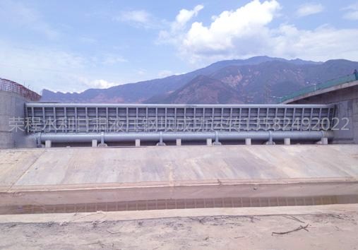 水利景觀壩鋼閘門的工作原理是主動壩背部設置高推力液壓支架,系統采用三角臂和拉桿放大機構。壩面運動通過底部的旋轉軸線向下旋轉,完全與壩體相遇。大壩可以通過多單元組合、分裂或同步提升來提升能在零下40度的環境下仍然保證鋼度,而不變形,獨特的壩體傾角和折角設計利用爬冰的爬冰現象,完美解決抗凍問題,可抵御局部冰壓力,從而保護景觀壩不損壞。