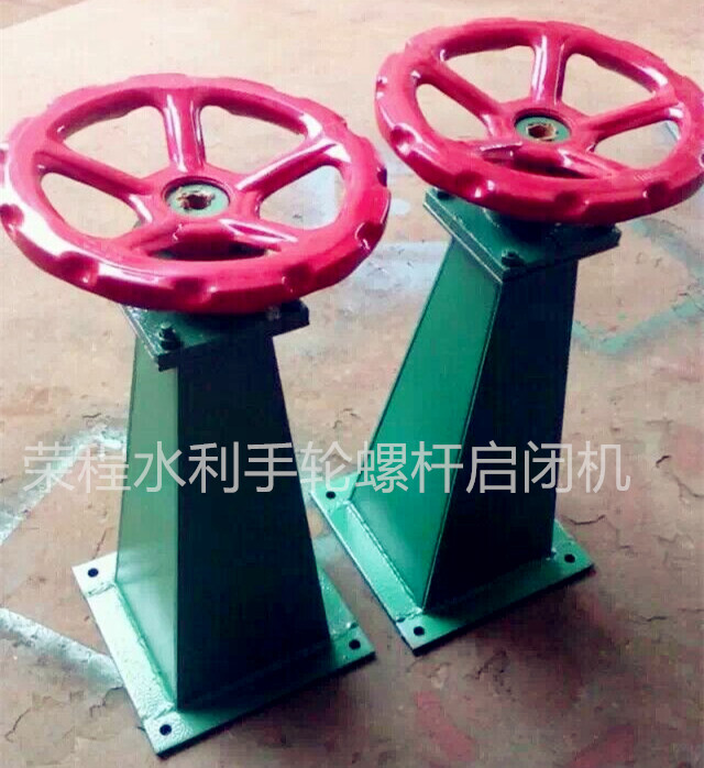手盤螺桿啟閉機,又稱為手輪螺桿啟閉機,是水利機械產品閘門啟閉機關系到水工建筑物的正常運行,除應滿足一般起重機械的設計要求外,工作安全可靠和操作靈活方便具有特殊的意義。該系列產品設計合理,操作簡便,靈活,便于安裝,平原山區有電無電均可使用,并具有防盜水功能,安全可靠。主要用于水力水電、市政建設、給水排水、水產養殖、農用水利建設等工程。手動螺桿啟閉機又稱為:“手搖螺桿啟閉機”,它是一種采用于人力操作的平面閘門啟閉機設備。它具有自鎖功能,閘門可停留在任何位置。并且配有防盜嘴及專用扳手,具有防盜水功能。螺桿啟閉機具有轉向變速快,手搖啟動。搖動輕巧,啟閉靈活等優點。它的結構由機殼、機蓋、支架、螺母、螺桿、大、小傘齒輪、壓力軸承、手搖柄等組成。
