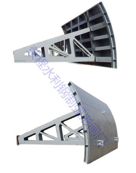 弧形閘門是擋水面為圓柱體的部分弧形面的閘門。其支撐臂的支撐鉸鏈位于圓的中心,當閘門打開和關閉時,閘門圍繞支撐鉸鏈旋轉。弧形閘門由旋轉門體、內嵌構件和啟閉設備三部分組成。弧形閘門由于啟閉力小,水力條件好,在各種水路中廣泛用作工作閘門。