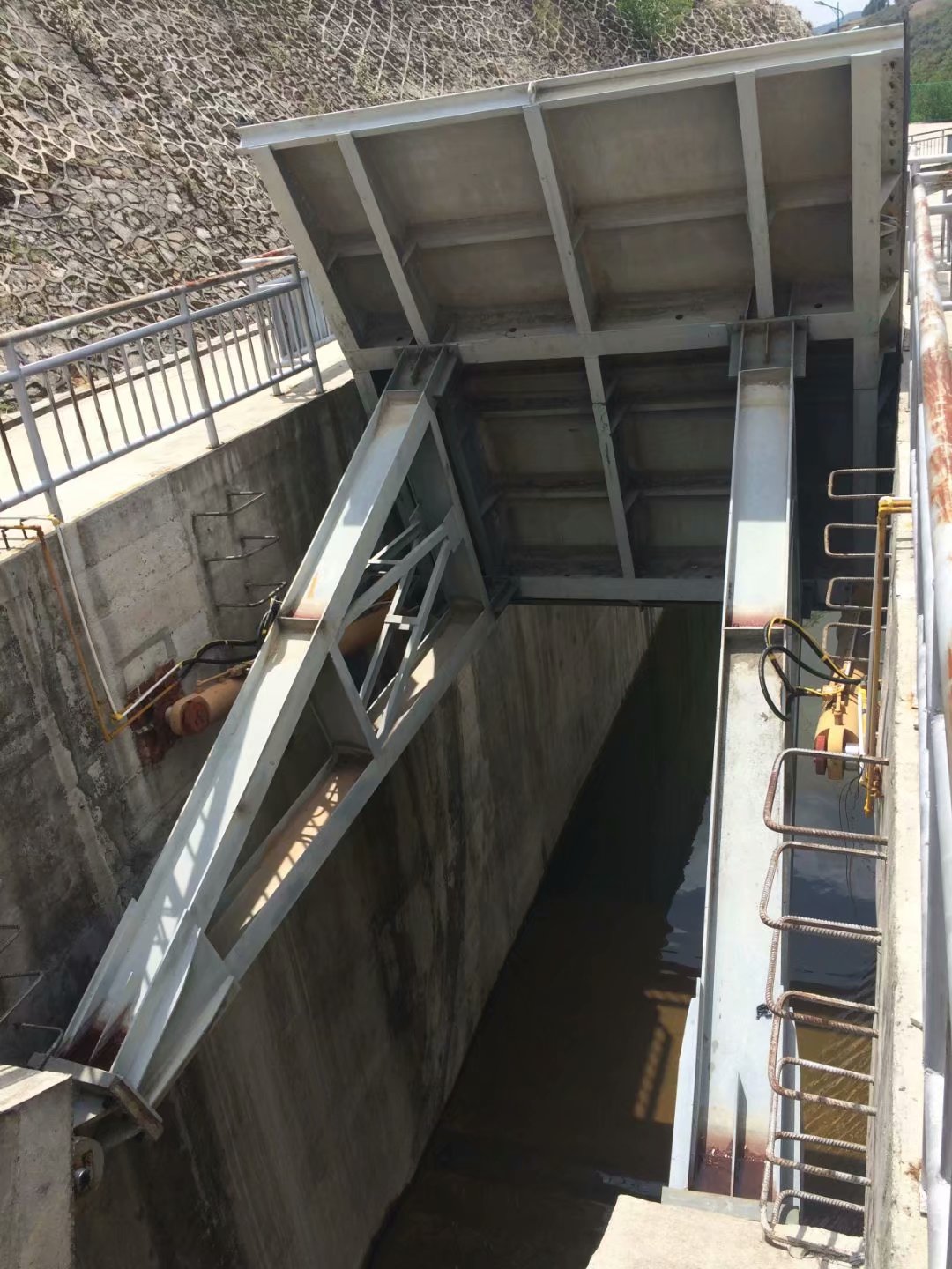 弧形鋼閘門(mén)系統(tǒng)采用液壓缸驅(qū)動(dòng),壩體坍塌可完全擱置在地板上,不堵水。當(dāng)水被阻塞時(shí),擋水板由閘門(mén)后面的支撐框架支撐,氣缸返回活動(dòng)柱塞,從而有效地保護(hù)柱塞免受腐蝕。這種新型門(mén)結(jié)構(gòu)獲得了國(guó)家發(fā)明專(zhuān)利;⌒武撻l門(mén)是目前設(shè)計(jì)合理的閘門(mén)之一。安裝、操作和操作方便?勺杂烧{(diào)節(jié)水的高度。它不受河流寬度、地理和氣候條件的限制。使用壽命長(zhǎng)達(dá)50年。
